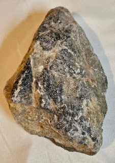 | Leaverite: Bluish Gray Specimen with White and Silver Veining and Mica |